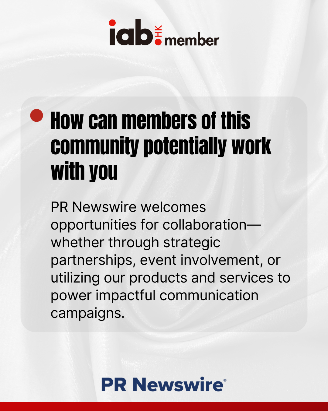 PR Newswire welcomes opportunities for collaboration—whether through strategic partnerships, event involvement, or utilizing our products and services to power impactful communication campaigns.